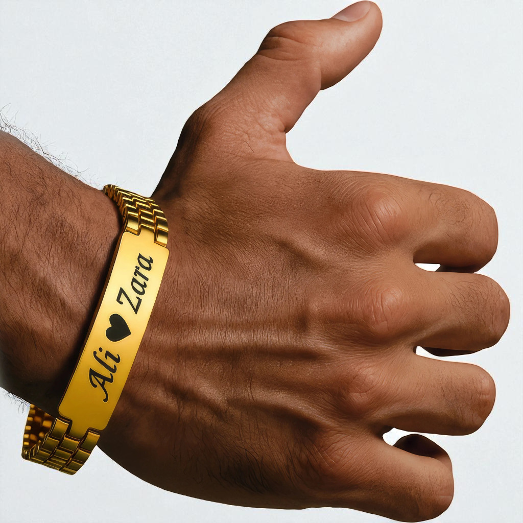 Crafted from premium 925 sterling silver or plated with 14k gold, this Gold ID Plate Bracelet is hypoallergenic, tarnish-resistant, and built to last. The solid Cuban link chain adds a luxurious, bold touch.