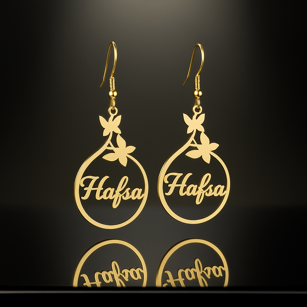 You can make these custom name butterfly earrings completely yours. They are truly “made just for you.” You can engrave any name, date, or initial butterfly name earrings combo.