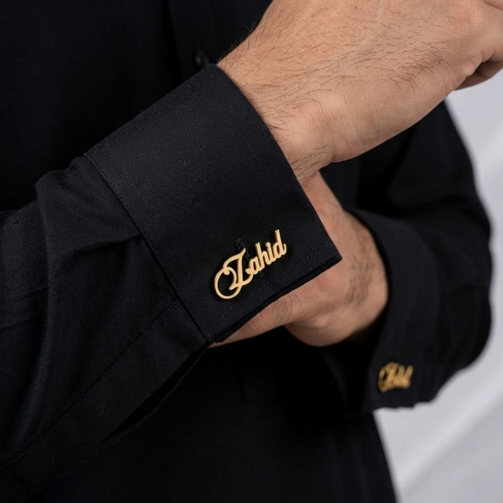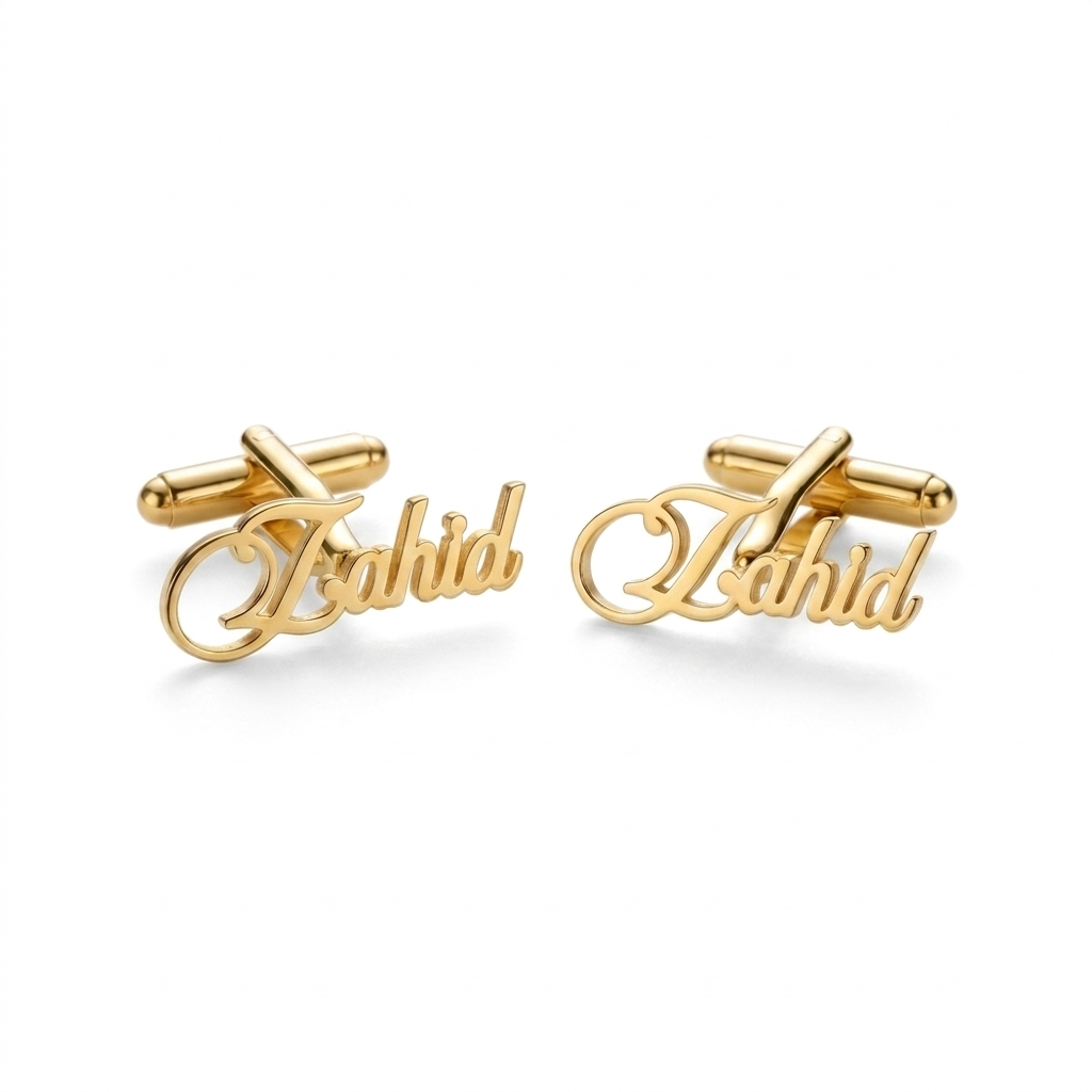 The Diloze Signature Cursive Name Cast Cufflinks are built differently and not cut, not engraved, but fully cast in solid form for a weighty, premium feel that you notice the moment you pick them up. Your name flows in bold, elegant cursive script, mirror-polished to a brilliant gold finish that catches light from every angle.