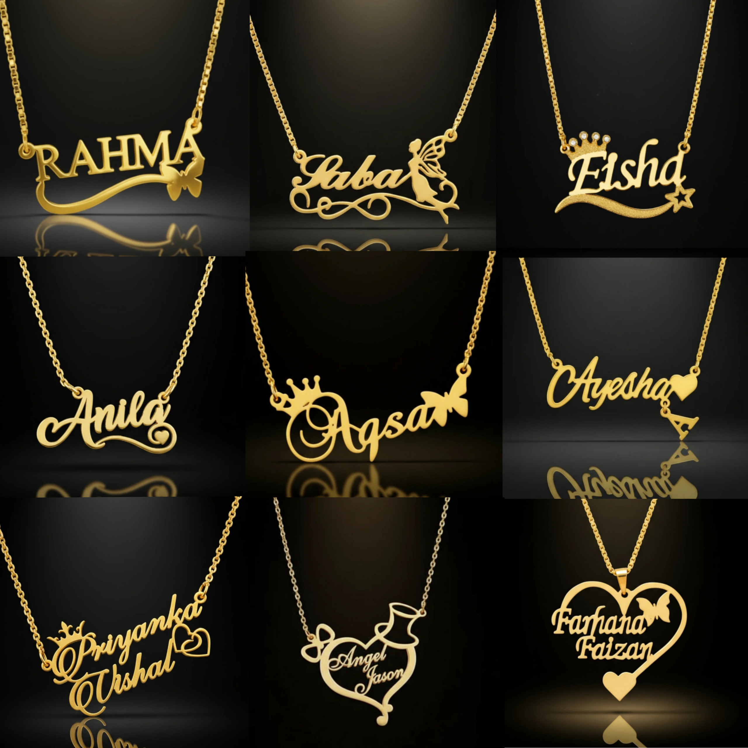 • Elegant Styles: Choose from layered or cursive name necklace designs.