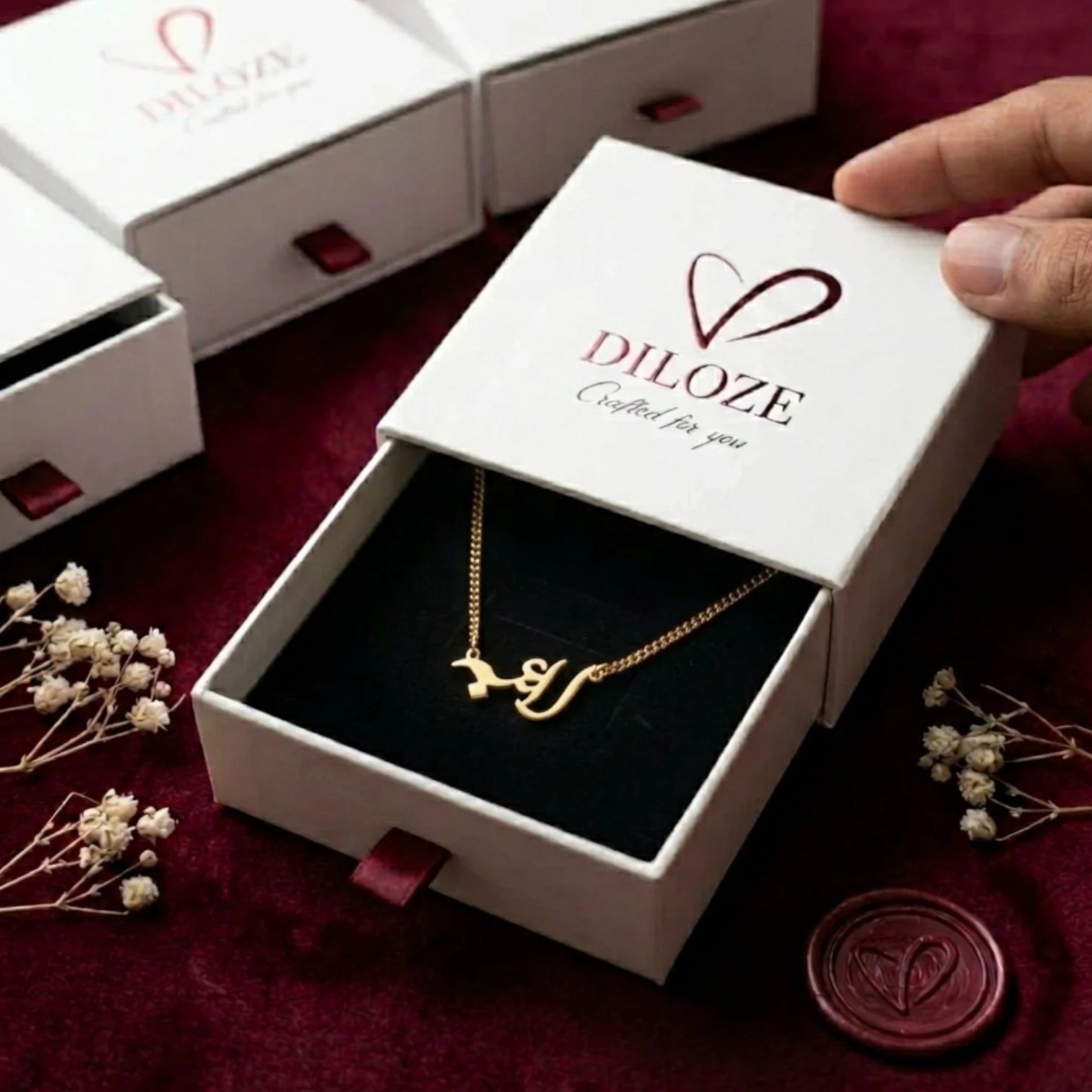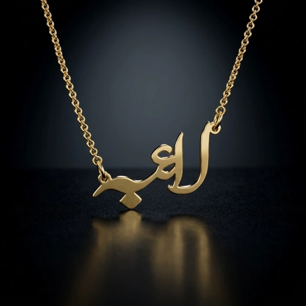 : A masterclass in minimalist elegance. Our Urdu Initial Pendant focuses on the bold beauty of a single character. Designed for those who appreciate sophisticated simplicity, this vertical charm is crafted with a high-shine finish and an anti-tarnish coating. Perfect for layering or as a subtle statement of identity.