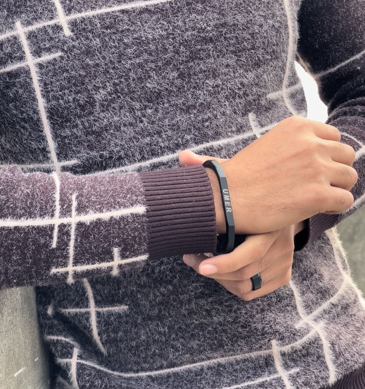 Stealth Matte Black Geometric Cuff – Personalized Mens Bangle