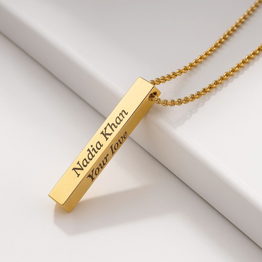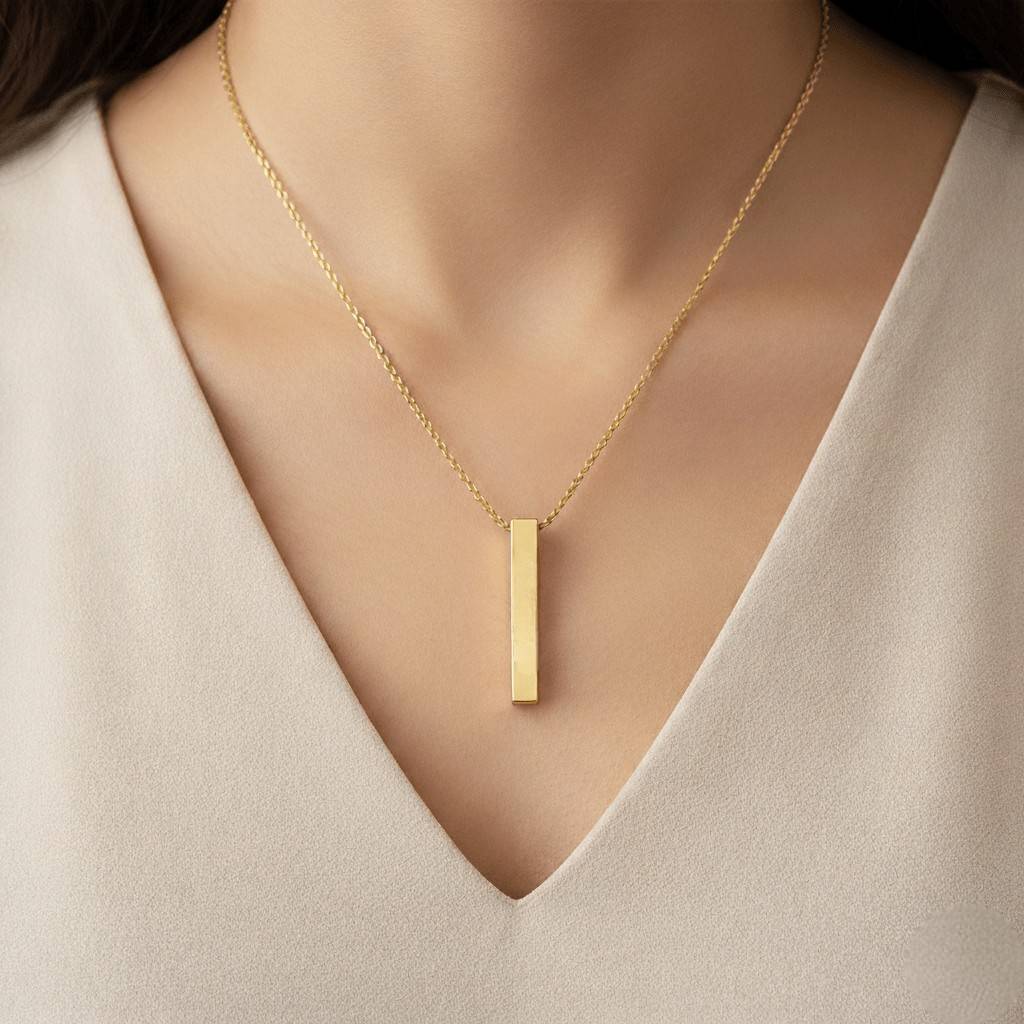 This vertical bar necklace is a customer favourite. People love how it feels and how perfect the engraving is. Create your unique piece today. Design yours now and wear your story proudly!