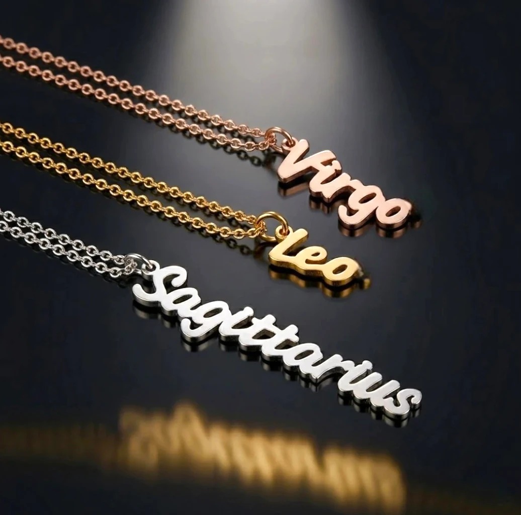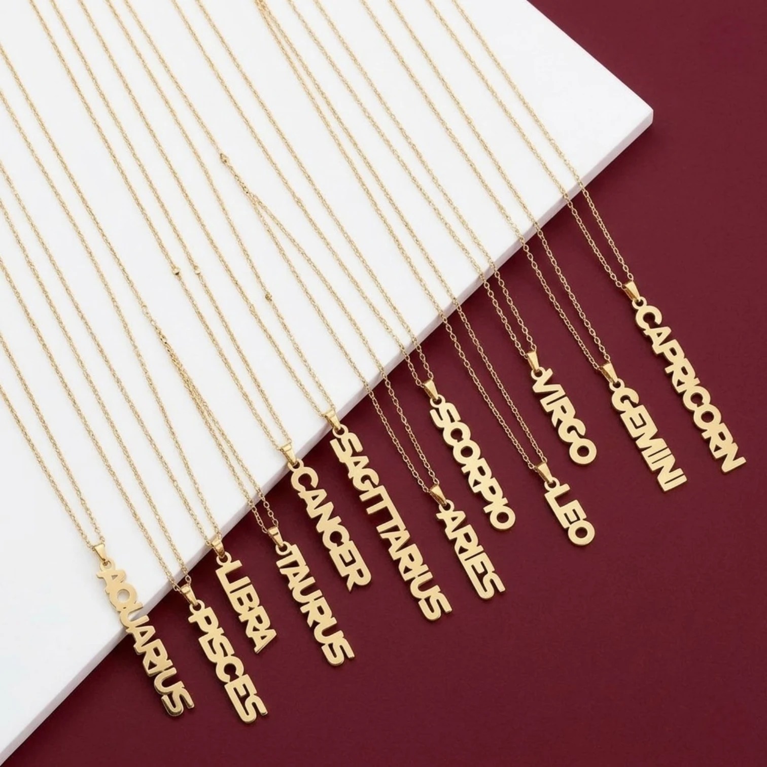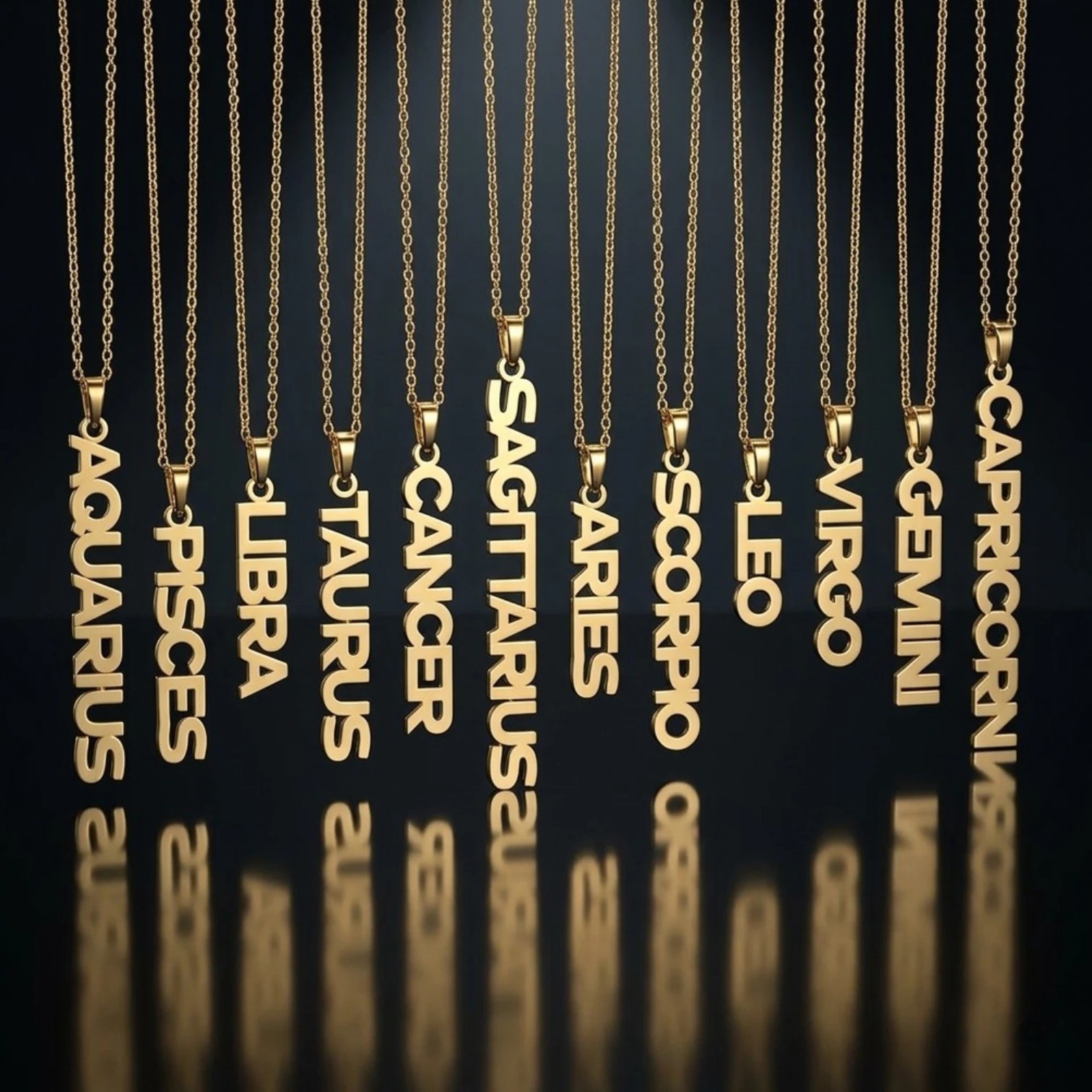 Zodiac Sign Name Pendant Necklace – All 12 Signs